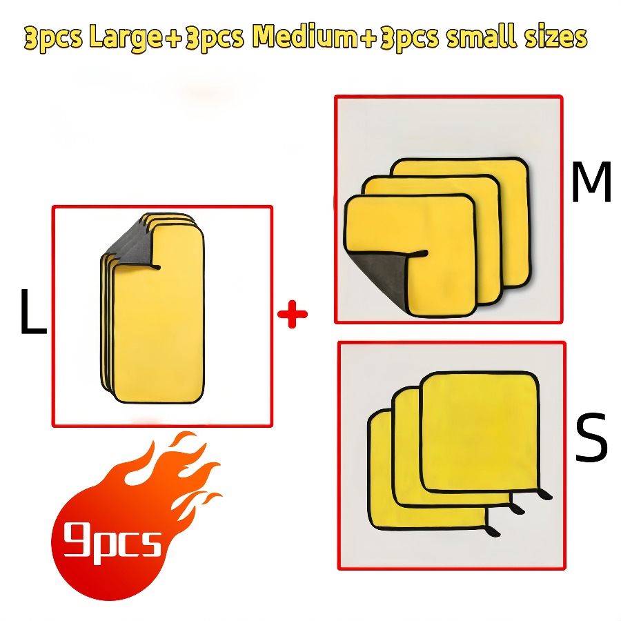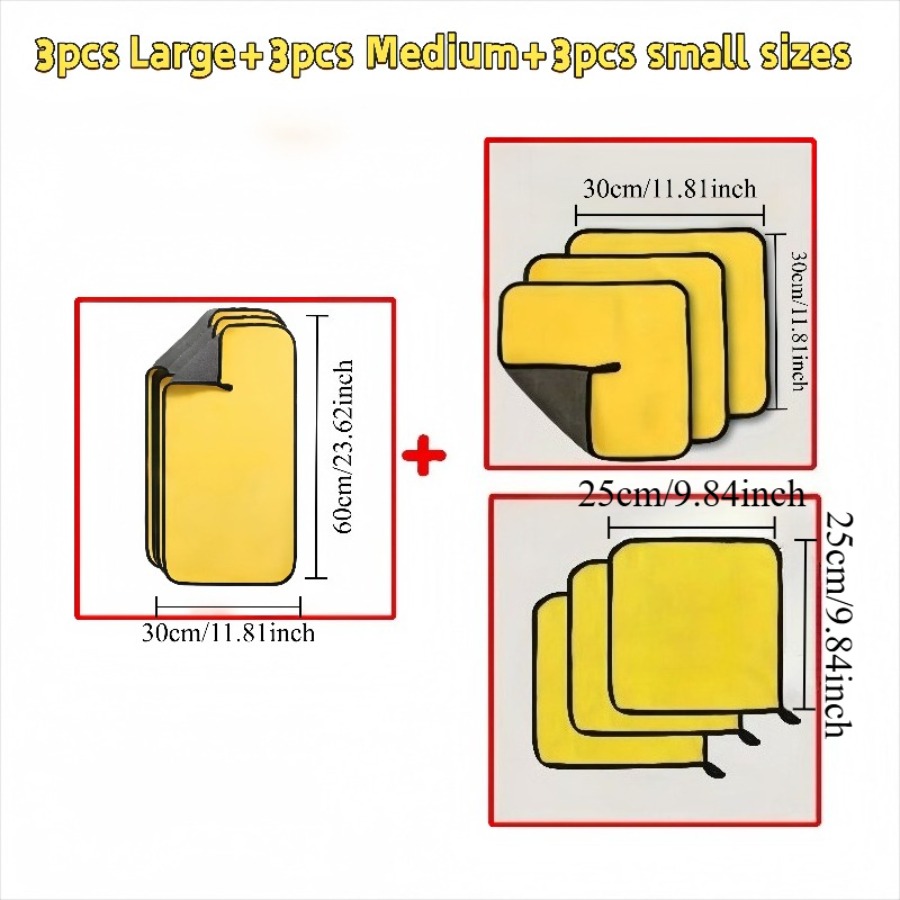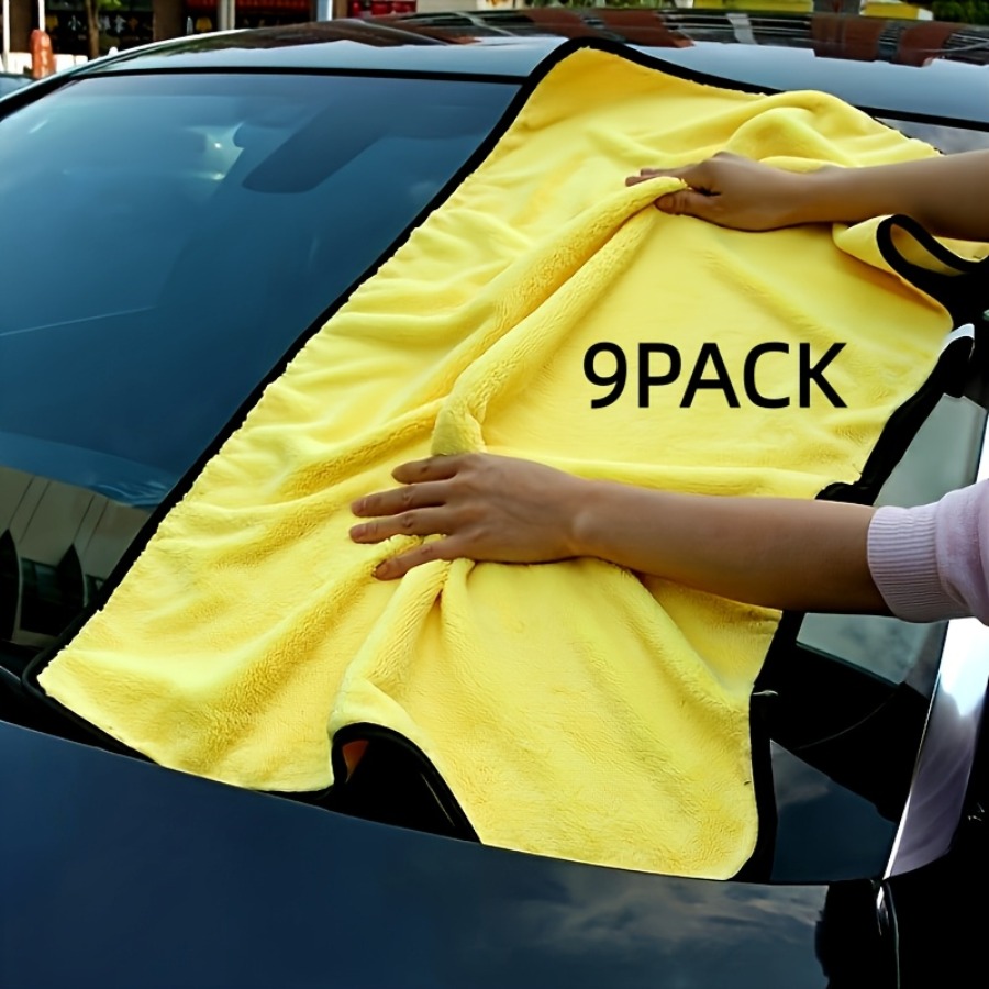 9P Thickened Microfiber Car Wash Cloth - Super Absorbent Towel for Car Glass, Interior and Exterior Cleaning, Yellow and Black Design, Durable Polyester Material, Perfect for Car Wash and Maintenance, Car Cleaning Essentials, Car Wash Accessories