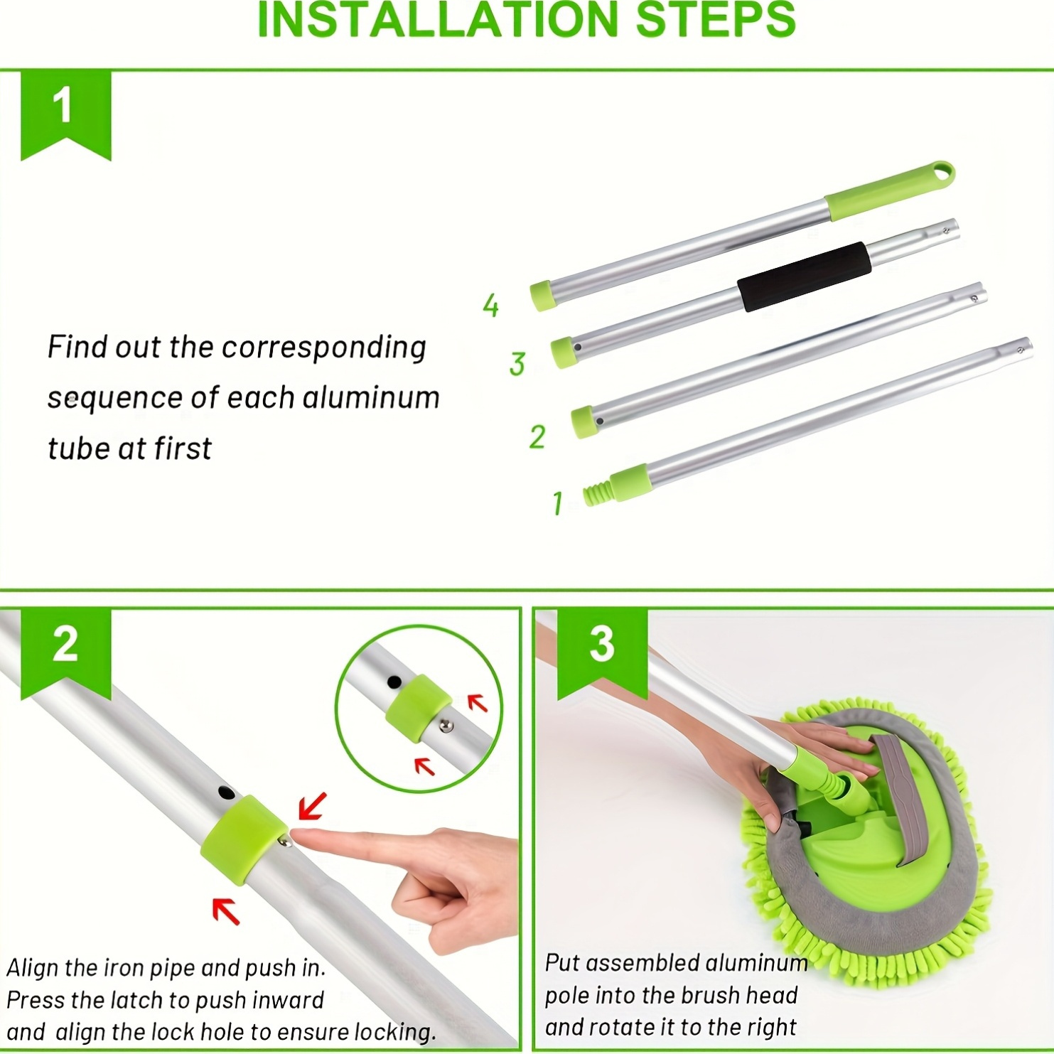 A Car Cleaning Kit with 8 Tools Including a 62-Inch (Approximately 157.5 Cm) Retractable Mop, Sponges, Chenille Microfiber Brushes, Scratch-Resistant Replacement Heads, And Dusters, Suitable for And Trucks, Without Battery