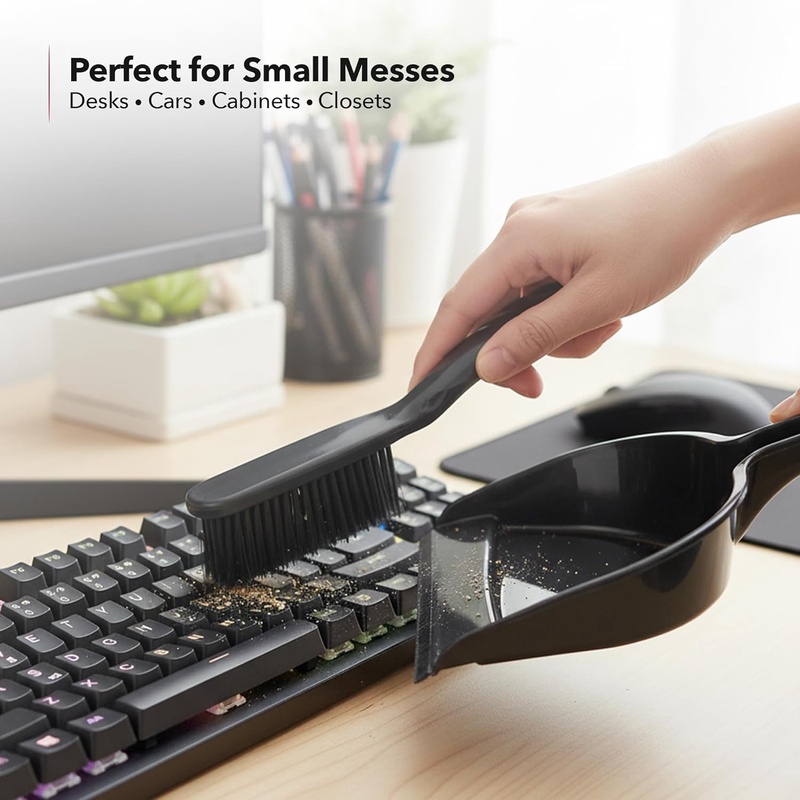 Carpet Rake Rubber Broom for Pet Hair Removal with Squeegee, Detailing Lint Fur Remover Brush, Dustpan and 50 Handle, Cleaning Tools Set for Rug, Hardwood Floor, Tile and Window, Grey CT2504GY