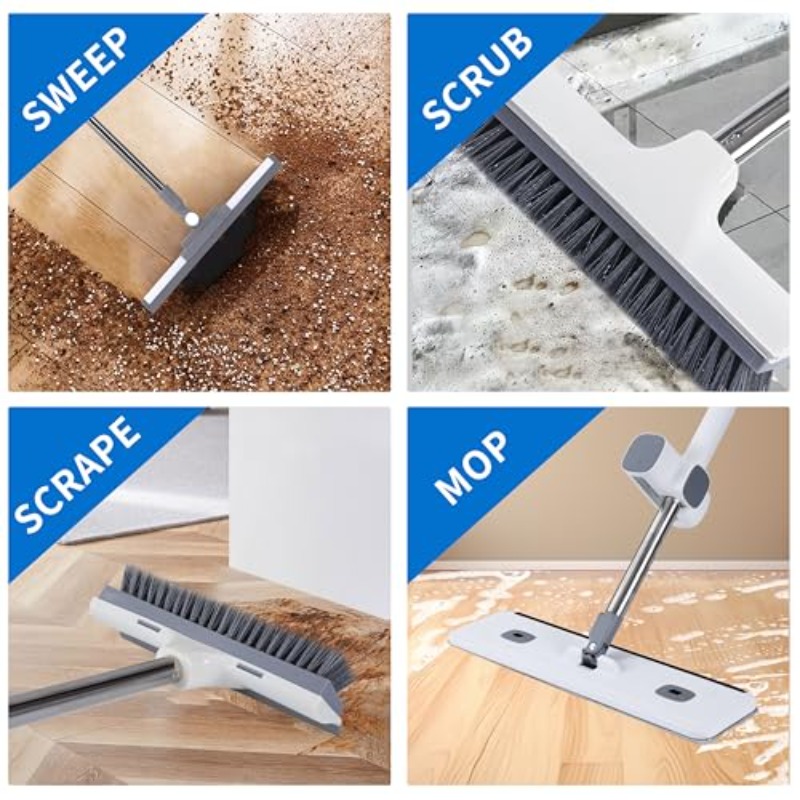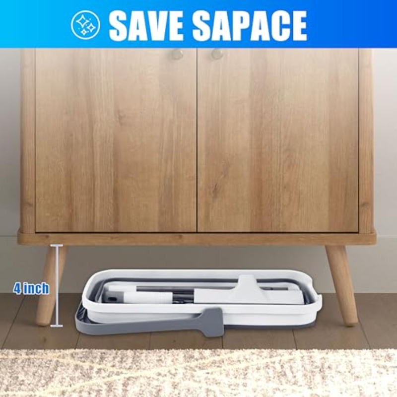 Collapsible Bucket and Adjustable Mop Set with Floor Brush Retractable Rubber Scraper for Garage Patio Shower Bathroom Marble Glass and Tile Floors Removes Water Foam and Pet Hair