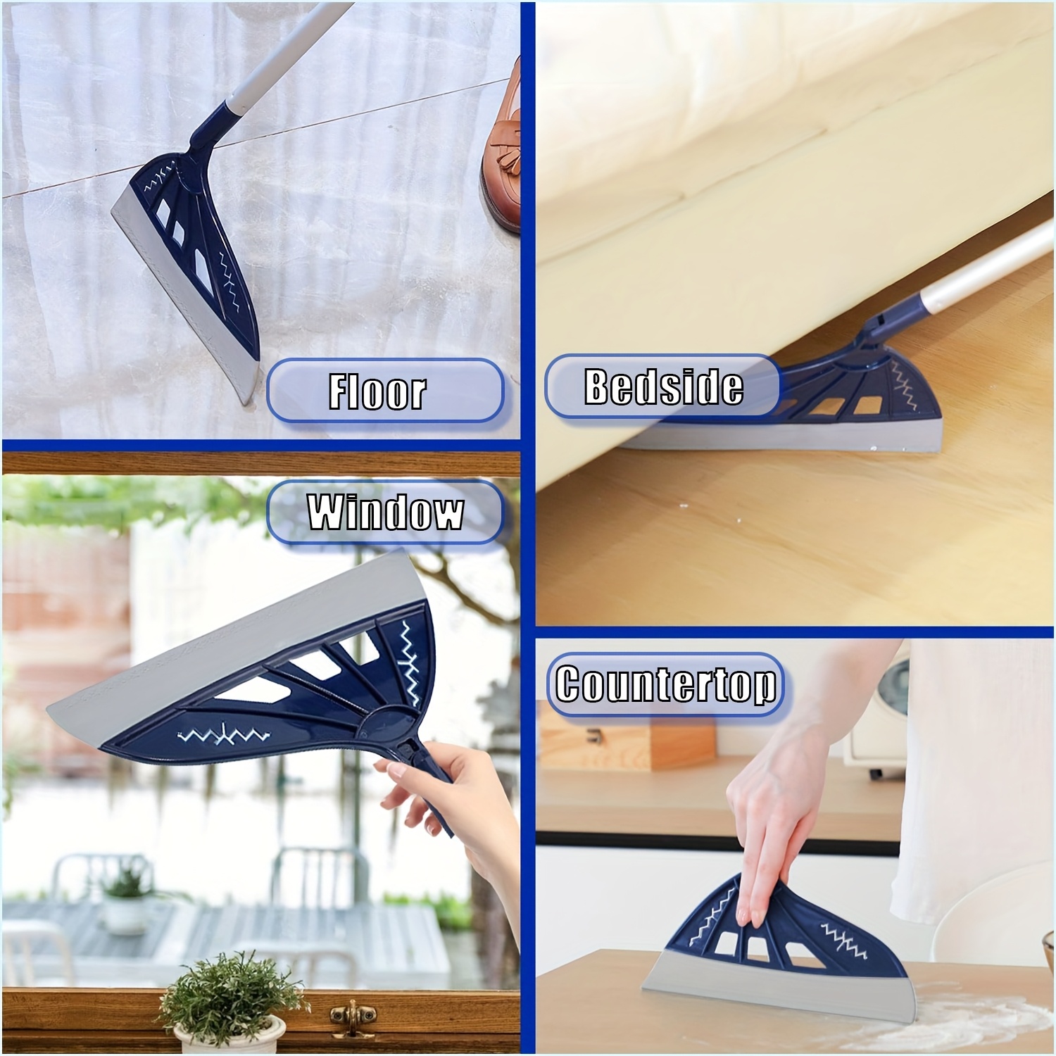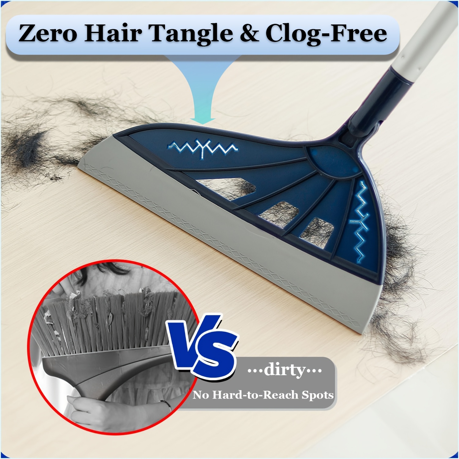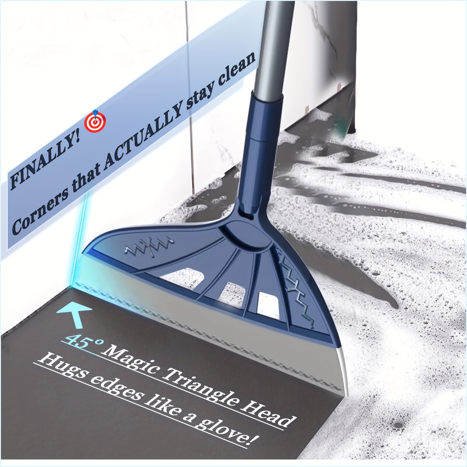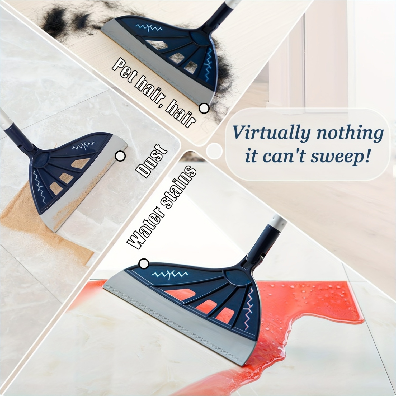 One Blue Silicone Broom! Surpasses Conventional Brooms! 45° Head for a Tight Seal in Hidden Areas, 180° Rotation for Thorough Cleaning Under Beds And Sofas, Perfect for Pet And, Water Marks