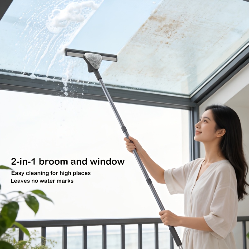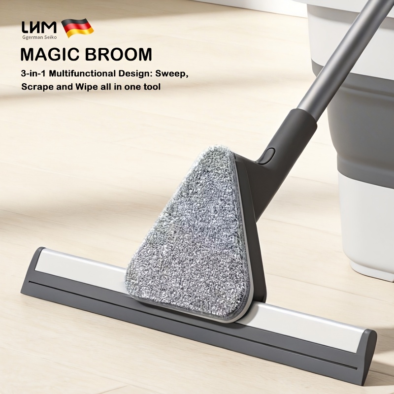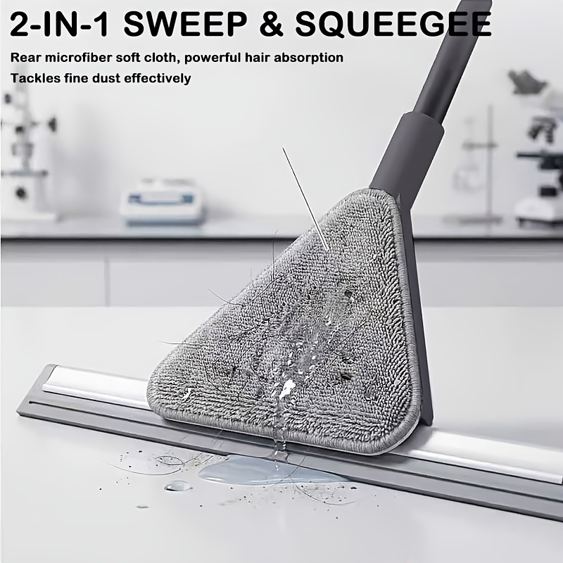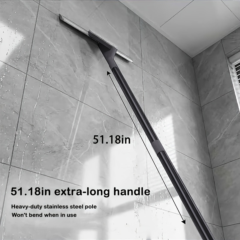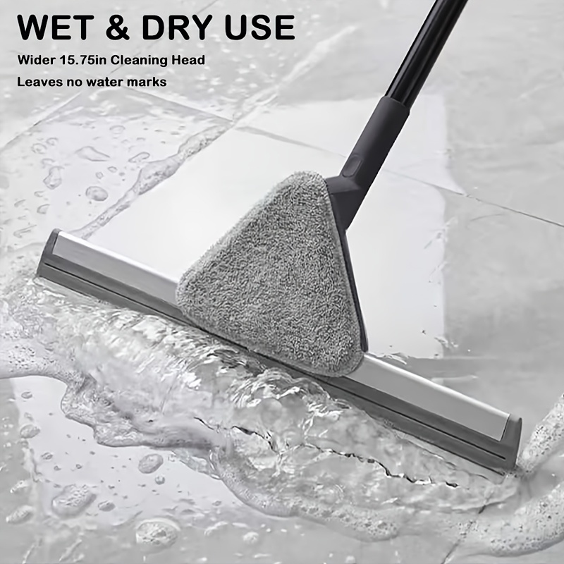 Stainless Steel Floor Wiper with Long Handle & Reusable Cleaning Cloth, Multi-Purpose Floor Scraper Broom for Bathroom Shower Kitchen Tile Glass Window Pet Hair Removal Cleaning Tool
